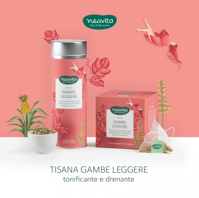 Indicazioni Tisana tonificante e benefica, ricca di proprietà per il benessere delle gambe. La Vite Rossa, il Gambo d’Ananas e il Meliloto sono degli ottimi alleati per favorire il microcircolo; il Finocchio è perfetto per sostenere il drenaggio dei liquidi del corpo.