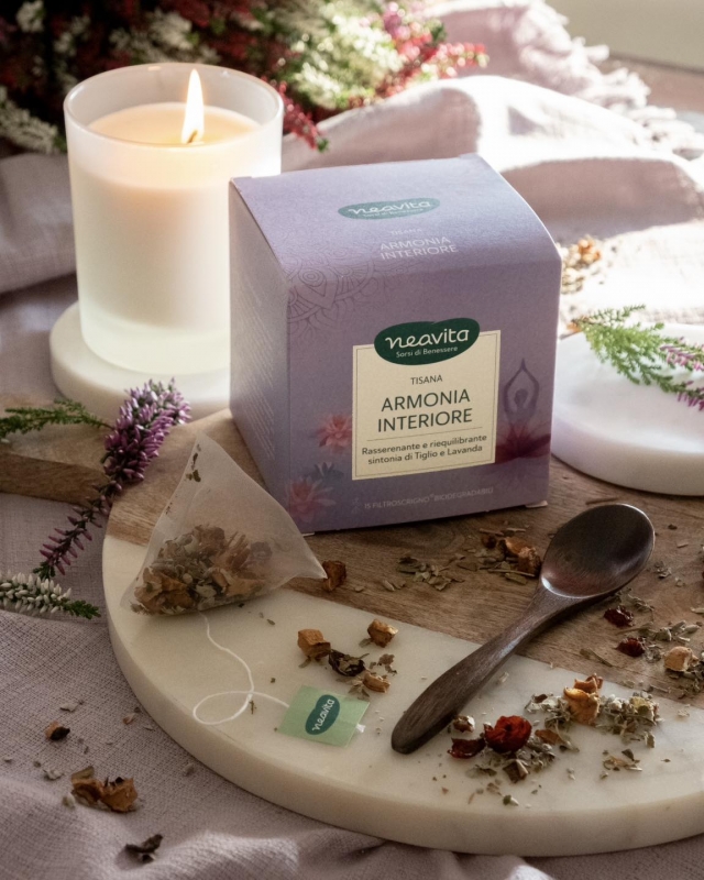 Ritrova la tua armonia e concediti una meravigliosa pausa di benessere, con questa tisana delicata e riequilibrante. In un ideale incontro di note dolci e fresche, le naturali virtù rilassanti del Tiglio e della Lavanda si uniscono nel farti assaporare il piacere della serenità, ogni volta che vuoi.