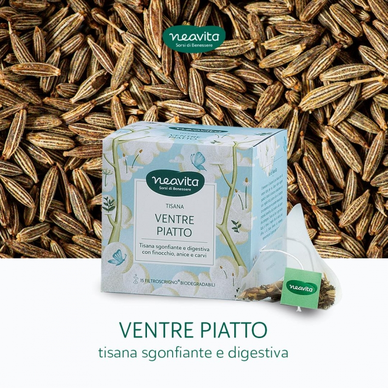 Indicazioni Piacevole tisana che custodisce piante selezionate e preziose come il Finocchio, l’Anice, la Menta piperita, il Carvi e la Camomilla, utili a favorire la regolare motilità intestinale, l’eliminazione dei gas e a sostenere la funzione digestiva.